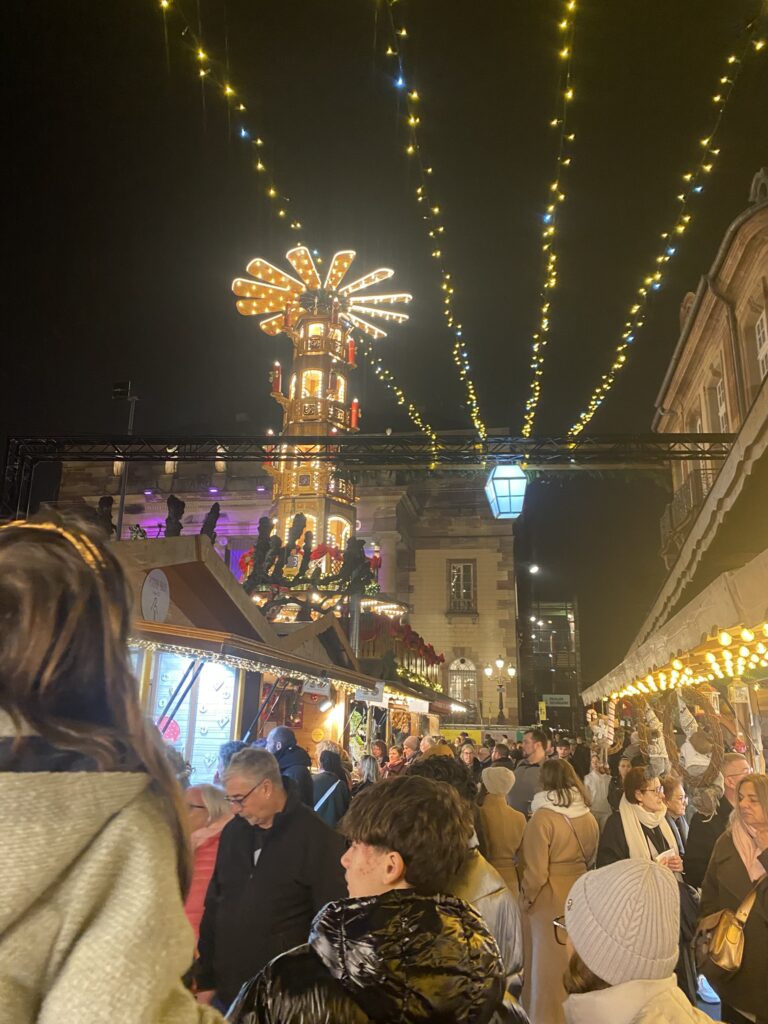 Doyen des marchés de France depuis 1570, le Christkindelsmärik de Strasbourg déploie ses chalets de bois sur les places historiques de la ville dans une atmosphère féerique. Son icône absolue reste le Grand Sapin de la place Kléber qui, du haut de ses 30 mètres, illumine le « Village du Partage » et les rituels de solidarité. C’est une expérience sensorielle totale où l’on déambule entre la majestueuse cathédrale et les canaux de la Petite France, un bretzel à la main.